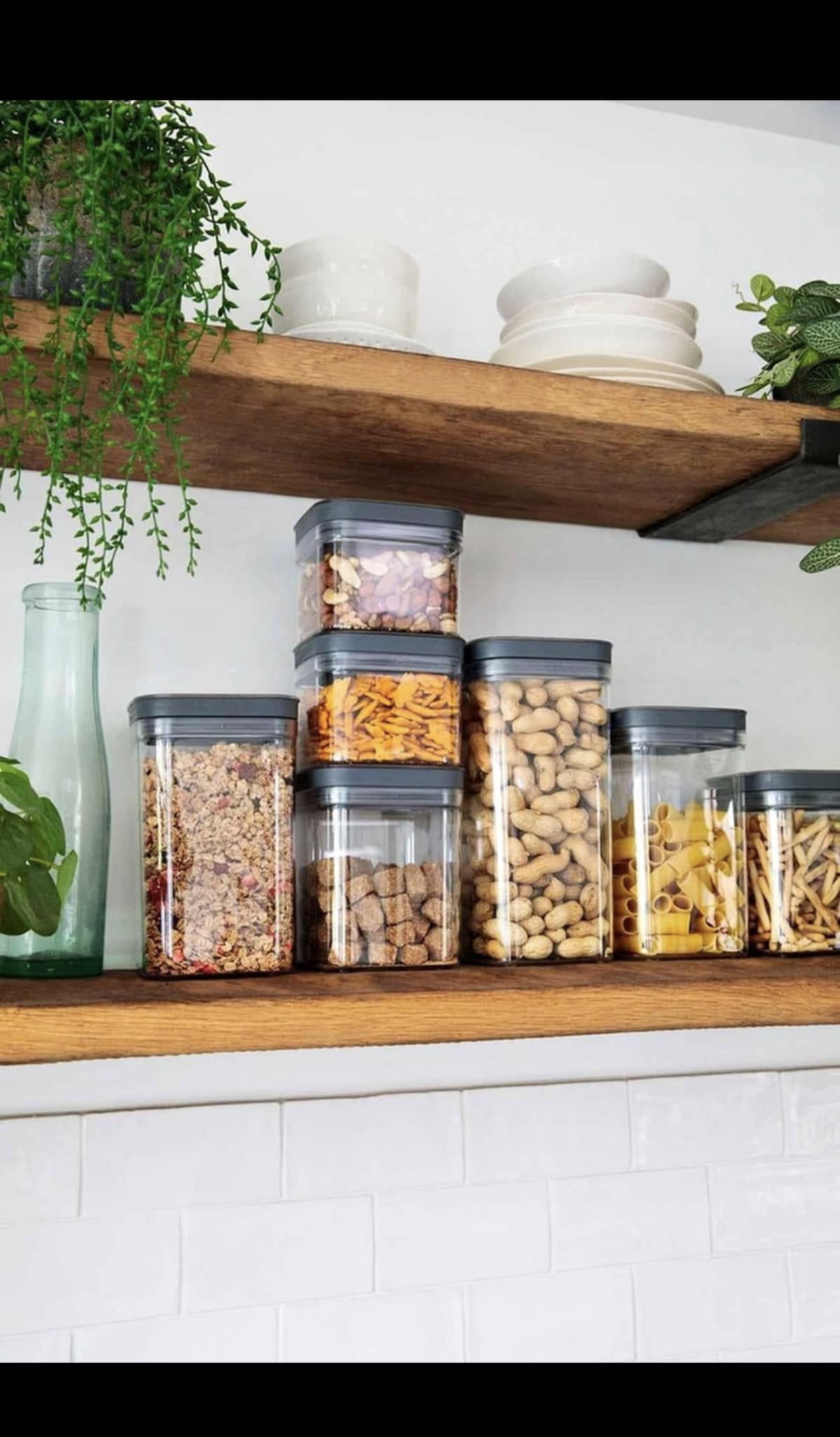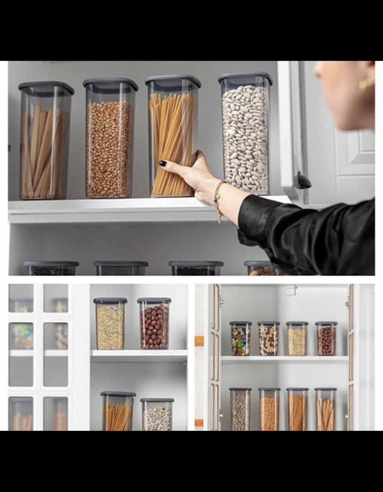 9 containere stivuibile pentru ordine în frigider și dulap.3 dimensiuni pentru orice tip de mâncare (0,57L / 1,17L / 1,77L).